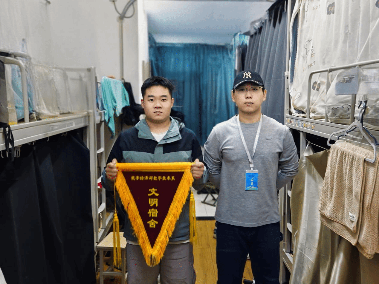 经过严格评审,每周推选出一批表现突出的“优秀文明宿舍”。这些宿舍在内务整理、环境布置等方面表现优异,物品收纳整齐有序,整体氛围文明和谐,展现出良好的集体风貌与合作精神。为表彰先进、树立典型,数字经济与数字技术系为获奖宿舍颁发实用奖品及“流动红旗”,以此激励更多学生积极参与文明宿舍建设。